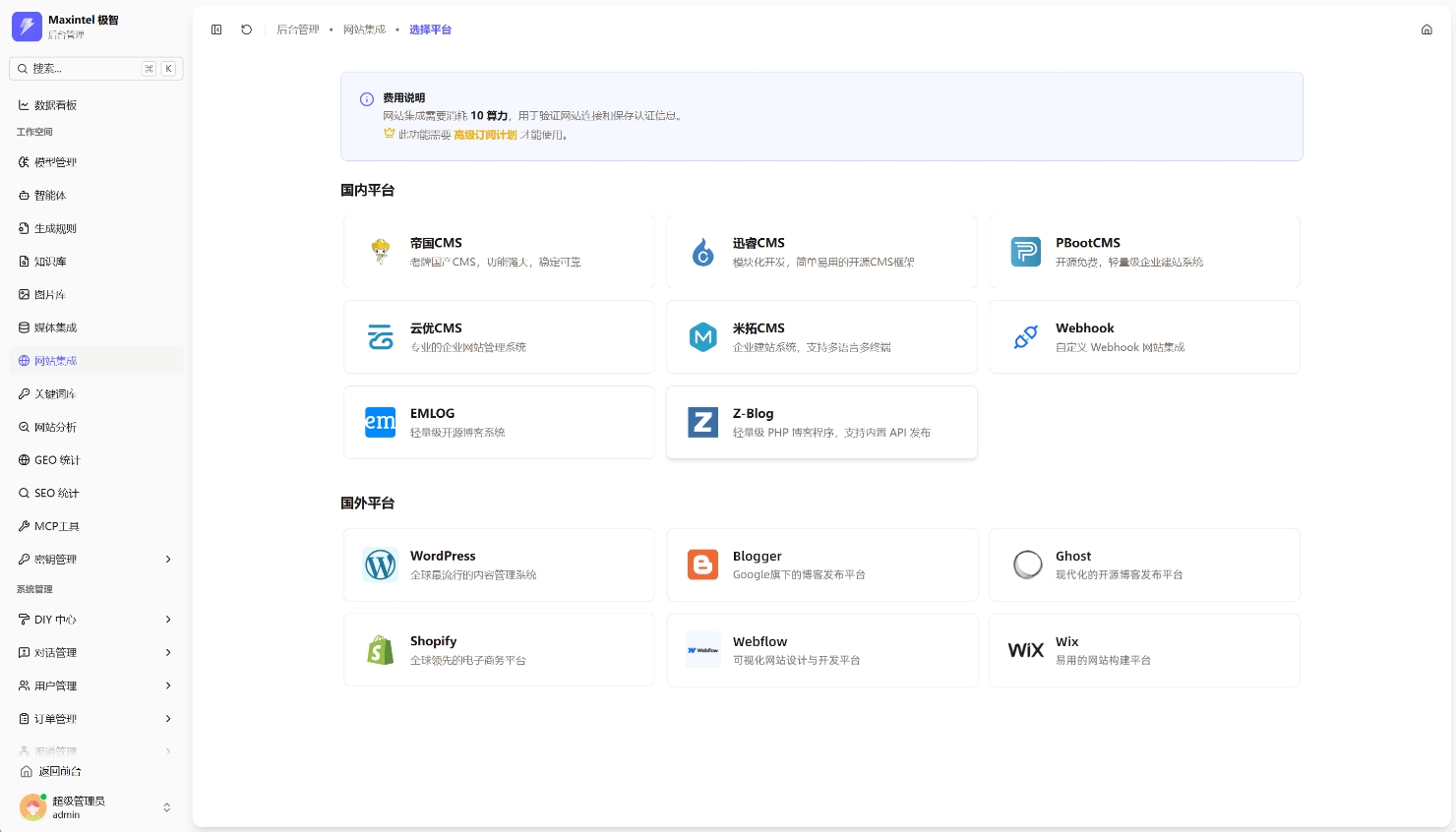 集成多平台 自动发布到网站和媒体平台